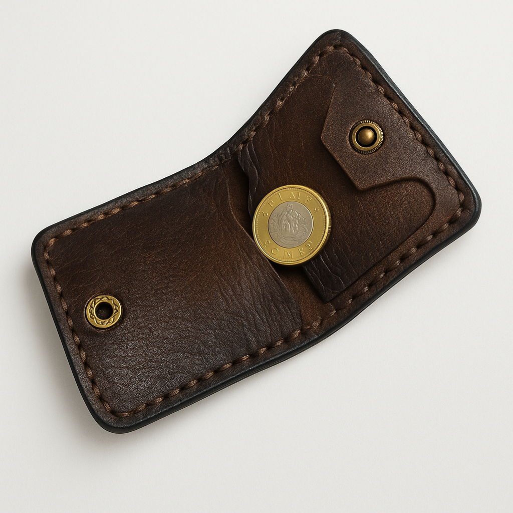 This sleek and practical pouch is perfect for anyone tired of rummaging through loose change. Handcrafted from durable vegetable-tanned leather and designed with simplicity in mind, the folded construction creates a secure pocket that keeps coins neatly tucked away.