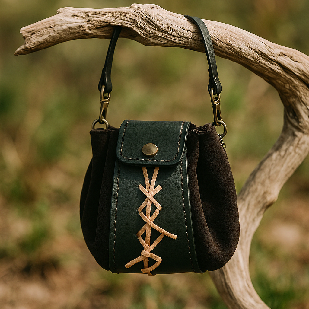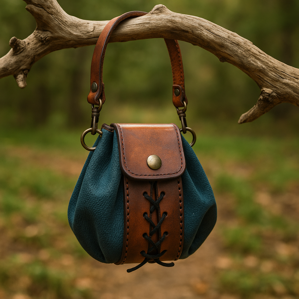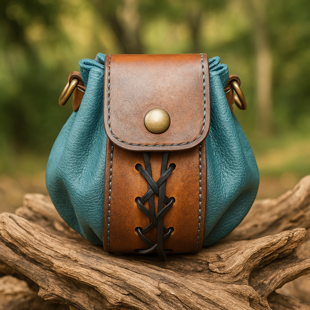 Handmade from a blend of hand-dyed vegetable-tanned leather and soft repurposed Italian offcut leather, each pouch is unique, reducing waste while adding rustic elegance with decorative leather lacing and optional bead accents.