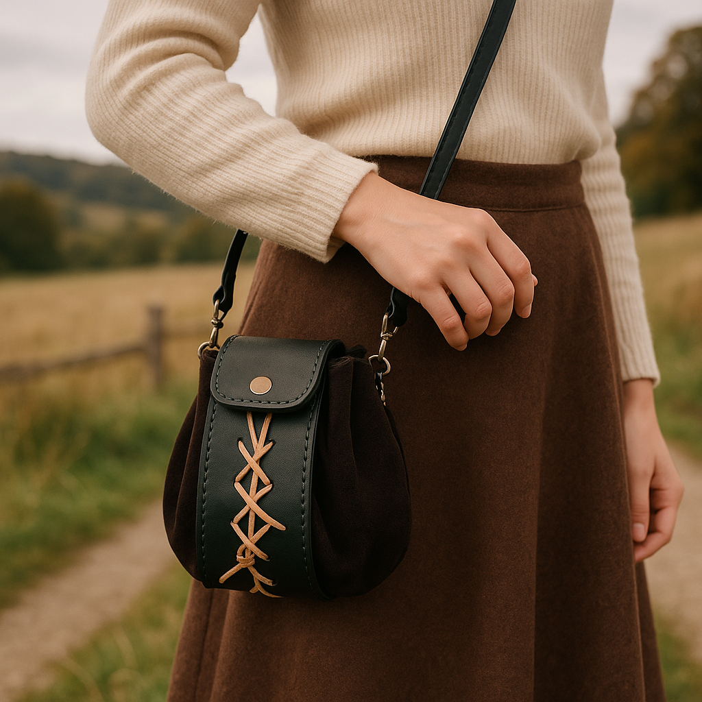 The medium laced pouch is practical and versatile — roomy enough for essentials like keys, dice, crystals, or jewellery, while still compact and easy to carry. It comes with a sturdy handle and the option of an additional strap for wearing over the shoulder or across the body.